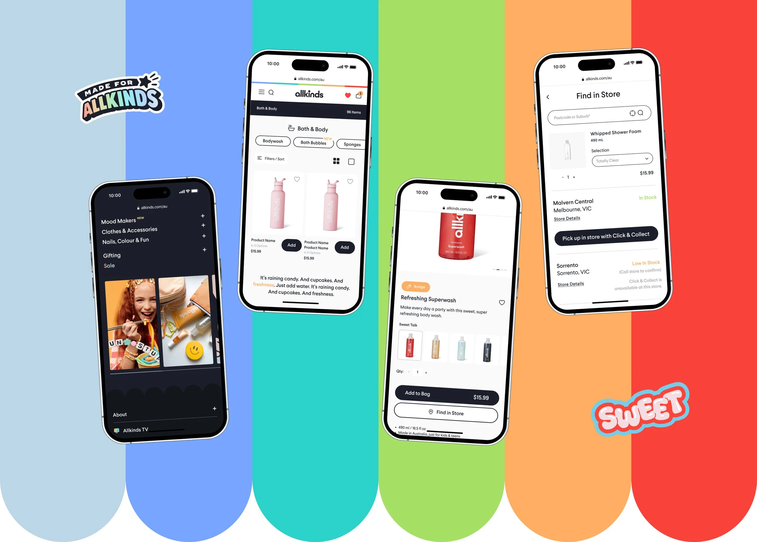 Allkinds was a fun brand to design for. I enjoyed experimenting with various micro interaction ideas to add personality to the digital experience. The Allkinds team were very open to all sorts of ideas which allowed extensive experimentation on my part. Some ideas were sold, others were not.