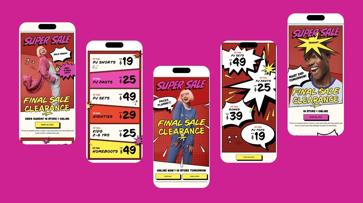 One of my key responsibilities was ensuring that all digital design elements aligned seamlessly with Peter Alexander’s marketing strategy. By closely collaborating with the marketing team and carefully studying their briefs, I consistently delivered designs that captured the essence of the brand and effectively communicated its unique selling points.