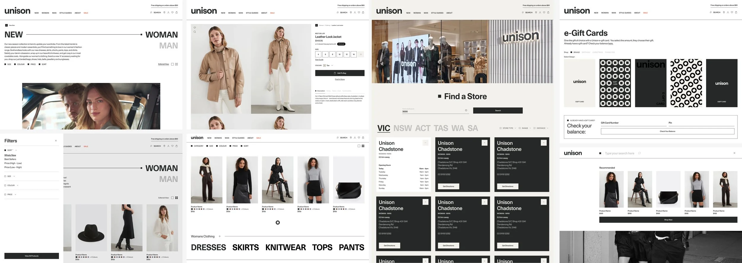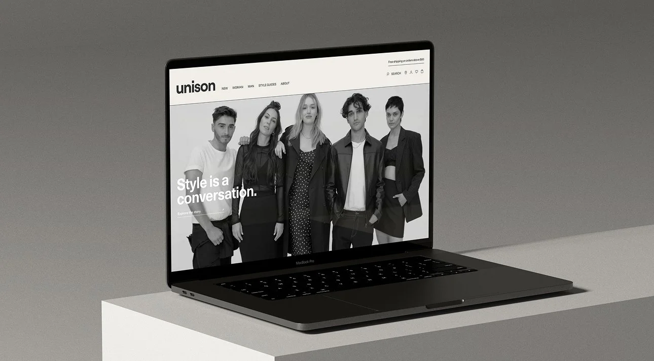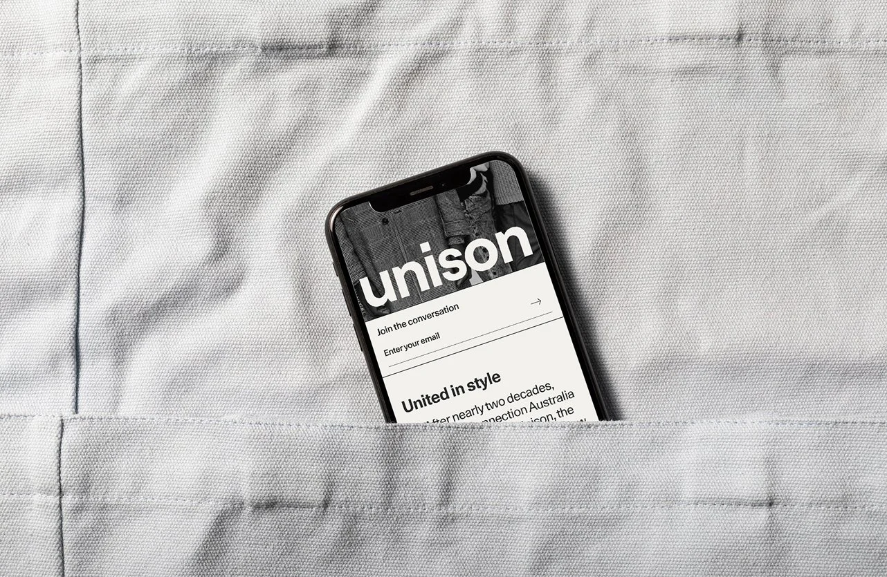 The Duality Mark which is highlighted as Unison’s central emblem, featured across clothing through to store activations and packaging heavily influenced the design direction of the website. This was done tactically through the square icon, predominantly used across key UI elements across the site as a visual navigator tool.